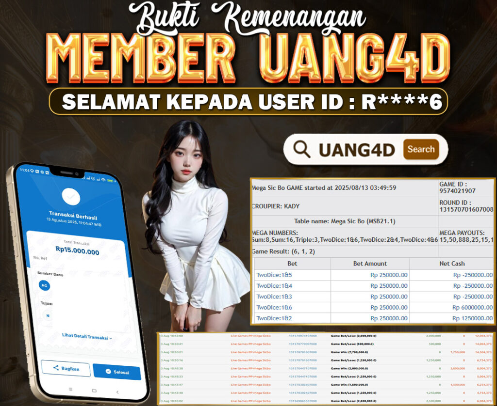 UANG4D –JACKPOT CASINO LIVE GAMES PP-MEGA SICBO 13 AGUSTUS 2025, Jackpot CASINO, Kemenangan Di CASINO, Bukti Kemenangan Situs Aman Terpercaya, Withdraw Berapapun Pasti DI Bayar Tuntas, Maxwin Live Casino Online.