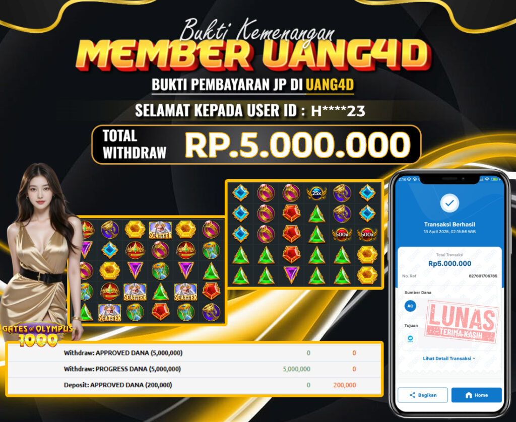 UANG4D JACKPOT SLOT OLYMPUS 1000 13 APRIL 2025, Kemenangan Slot, Bukti Kemenangan Slot, Kemenangan Slot Pragmatic Play, Menang Slot online, Slot Gacor, Situs Aman Terpercaya, Withdraw Berapapun Pasti DI Bayar Tuntas, Maxwin Slot Online.