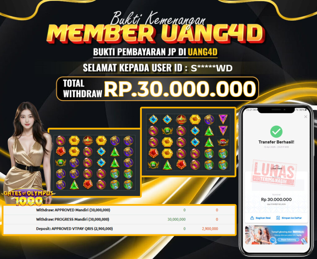 UANG4D –JACKPOT SLOT OLYMPUS 1000 14 APRIL 2025, Kemenangan Slot, Bukti Kemenangan Slot, Kemenangan Slot Pragmatic Play, Menang Slot online, Slot Gacor, Situs Aman Terpercaya, Withdraw Berapapun Pasti DI Bayar Tuntas, Maxwin Slot Online.