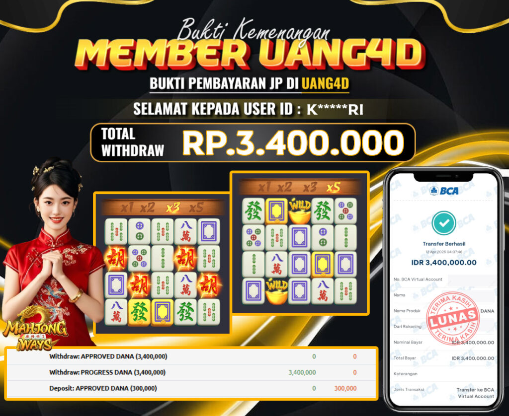 UANG4D –JACKPOT SLOT MAHJONG WAYS 12 APRIL 2025 , Kemenangan Slot, Bukti Kemenangan Slot, Kemenangan Slot PG Soft, Menang Slot online, Slot Gacor, Situs Aman Terpercaya, Withdraw Berapapun Pasti DI Bayar Tuntas, Maxwin Slot Online.