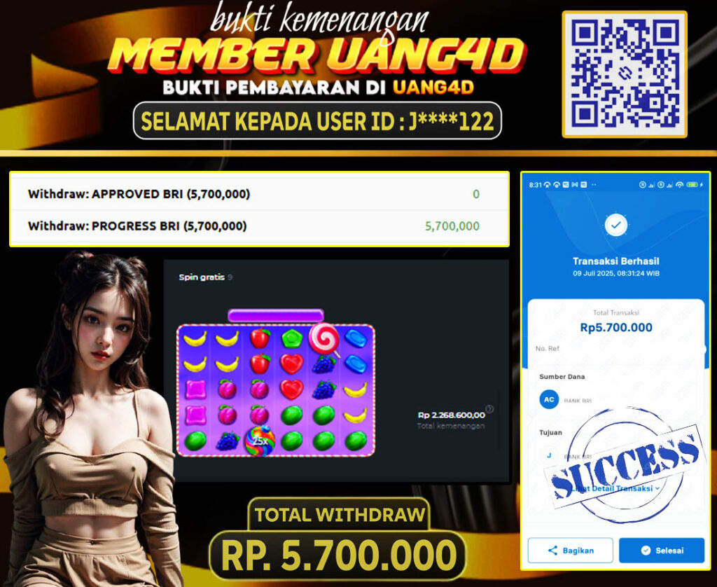 UANG4D –JACKPOT SLOT SWEET BONANZA 1000 09 JULI 2025, Kemenangan Slot, Bukti Kemenangan Slot, Kemenangan Slot Pragmatic Play, Menang Slot online, Slot Gacor, Situs Aman Terpercaya, Withdraw Berapapun Pasti DI Bayar Tuntas, Maxwin Slot Online.