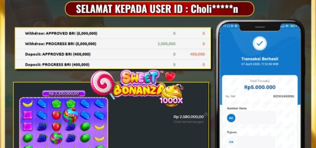 UANG4D –JACKPOT SLOT SWEET BONANZA 1000 07 APRIL 2025, Kemenangan Slot, Bukti Kemenangan Slot, Kemenangan Slot Pragmatic Play, Menang Slot online, Slot Gacor, Situs Aman Terpercaya, Withdraw Berapapun Pasti DI Bayar Tuntas, Maxwin Slot Online.