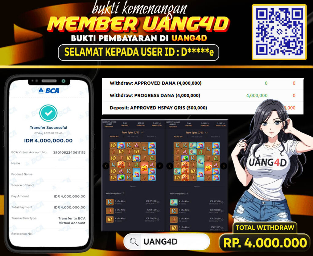 Jangan lewatkan kesempatan untuk meraih kemenangan besar. Daftar sekarang di UANG4D dan rasakan pengalaman bermain slot terbaik yang pernah ada! Putar gulungan, menangkan jackpot, dan jadilah bagian dari komunitas pemain sukses kami!