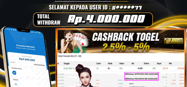 Setiap hari, member UANG4D berhasil meraih jackpot besar dari berbagai provider togel ternama yang kami sediakan, seperti Sydney, Singapore, Hongkong dan masih banyak lagi. Kami secara rutin menampilkan bukti screenshot atau rekapan kemenangan yang berhasil diraih, mulai dari kemenangan ratusan ribu hingga puluhan juta rupiah. Semua slip kemenangan ini kami hadirkan untuk membuktikan bahwa di UANG4D, peluang menang itu nyata.