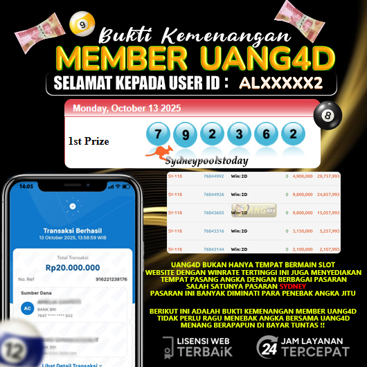 JACKPOT TOGEL MAIN SYDNEY 13 OKTOBER 2025, Jackpot Togel Akurat, Kemenangan Togel, Bukti Kemenangan Togel, Kemenangan Togel Sydney, Menang Togel online, Togel Gacor, Situs Aman Terpercaya, WD Berapapun Pasti DI Bayar Tuntas, Maxwin Togel Online.