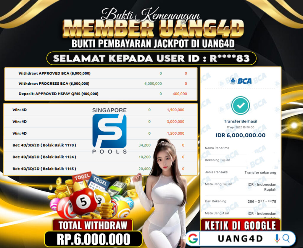 JACKPOT TOGEL SINGAPORE POOLS 17 APRIL 2025, Jackpot Togel Akurat, Kemenangan Togel, Bukti Kemenangan Togel, Kemenangan Togel SINGAPORE , Menang Togel online, Togel Gacor, Situs Aman Terpercaya, WD Berapapun Pasti DI Bayar Tuntas, Maxwin Togel Online.